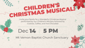This Christmas Season we will be Celebrating the Birth of our Savior Jesus Christ with a Children’s Christmas Musical and Christmas Candle Light Service.